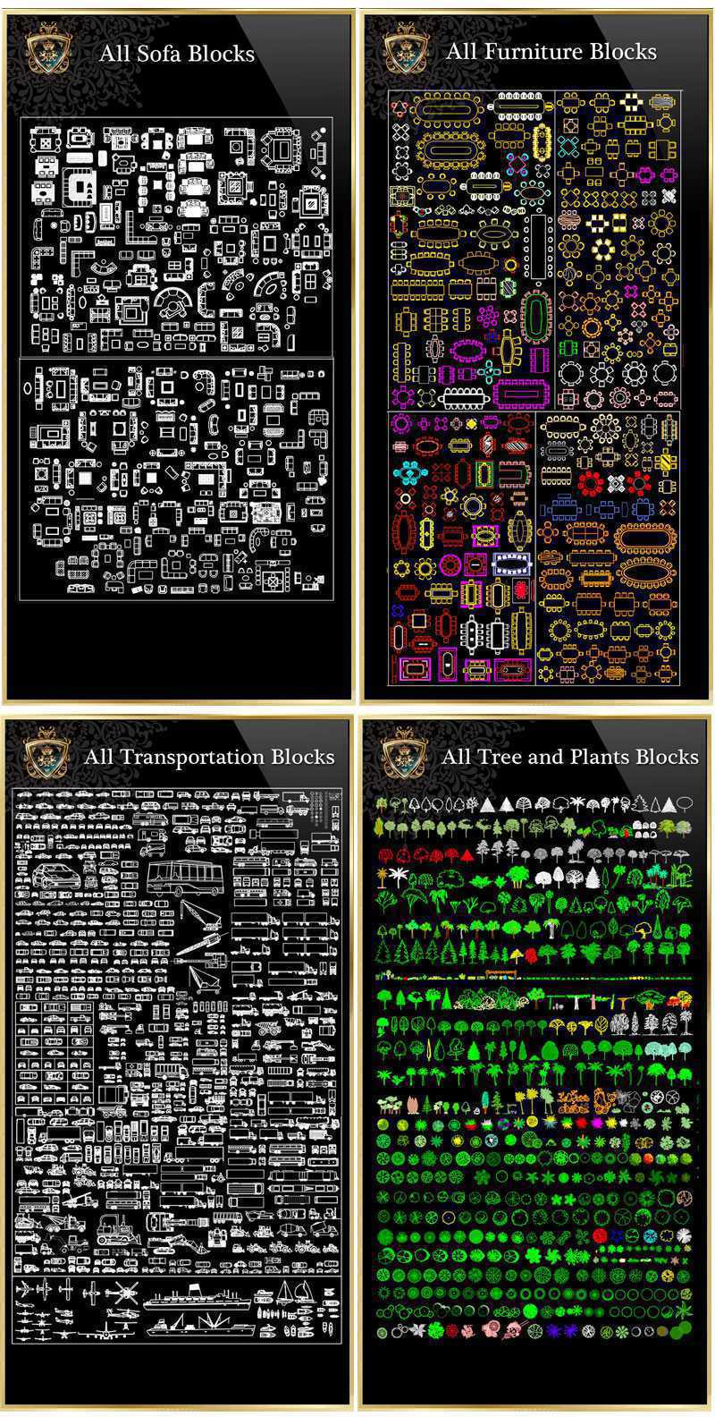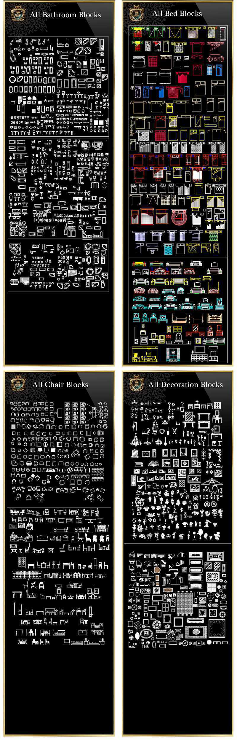 Over 1200+ Decorative elements CAD Blocks V.3 Over 1200+ Decorative elements CAD Blocks V.4 Over 1200+ Hardware Accessories  CAD Blocks