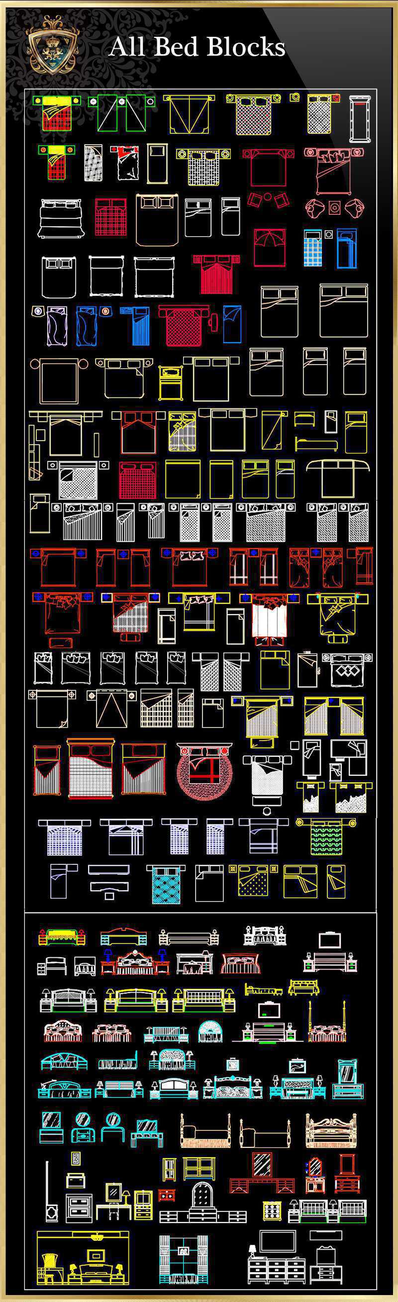88 Types of Bedroom Back Wall Design CAD Drawings Over 1200+ Decorative elements CAD Blocks V.1 Over 1200+ Decorative elements CAD Blocks V.2