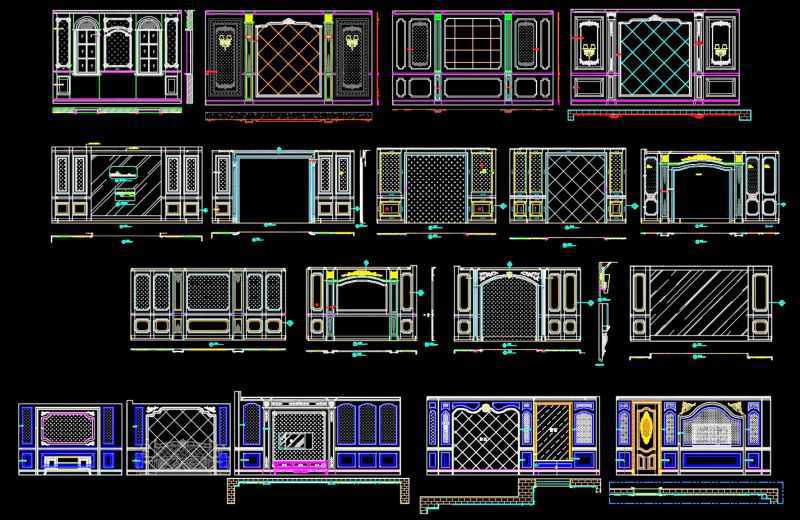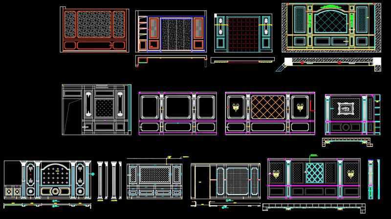 88 Types of Bedroom Back Wall Design CAD Drawings Over 1200+ Decorative elements CAD Blocks V.1 Over 1200+ Decorative elements CAD Blocks V.2